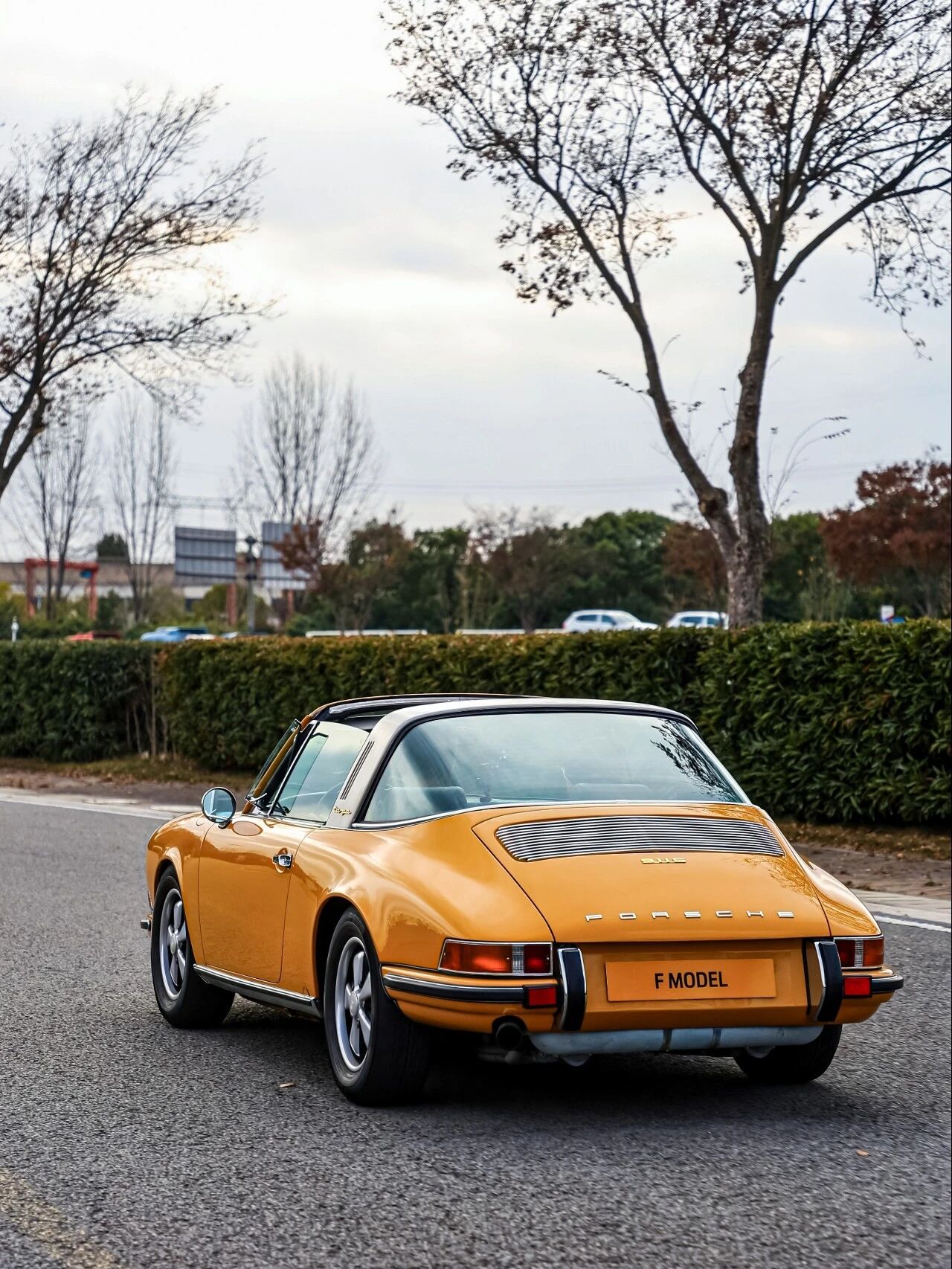 这辆1969年产的911 S Targa搭载了2.0L风冷水平对置六缸发动机,匹配5速手动变速箱,延续了保时捷纯粹的性能基因。1965 年,为应对美国对敞篷车的安全新规,保时捷推出首款装有固定式防滚架的安全敞篷车 —— 911 Targa。其命名来源于西西里岛的传奇公路赛塔格·佛罗热 (Targa Florio),也正是保时捷屡创佳绩的地方。Targa 防滚架后来成为了保时捷品牌典型的功能性与美学结合的象征,并逐渐发展成了一个独特的品牌标志,开放而不失内涵,运动而不失风格。Targa 既是工程技艺的结晶,也是设计史上的经典之作。